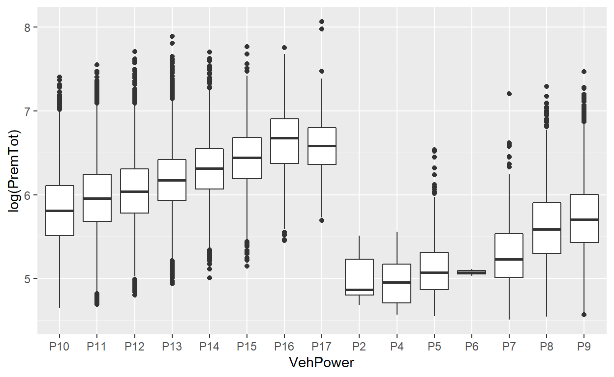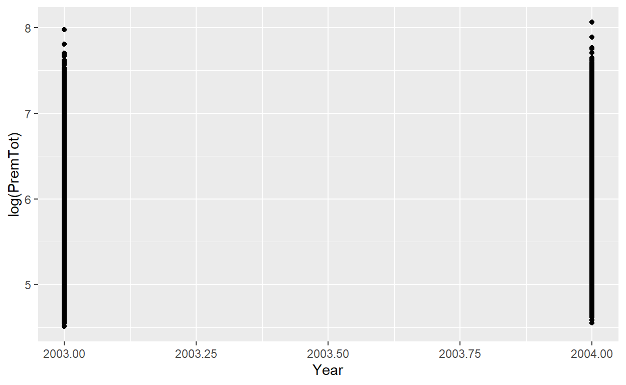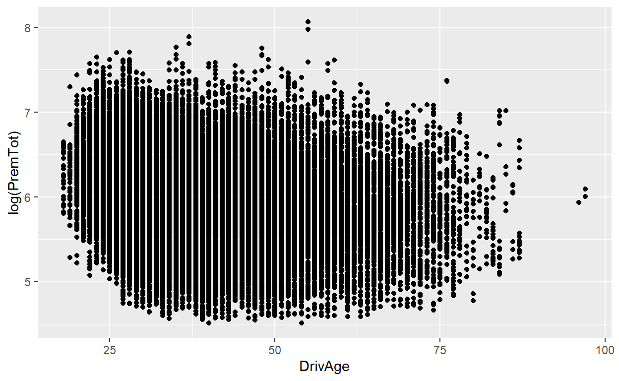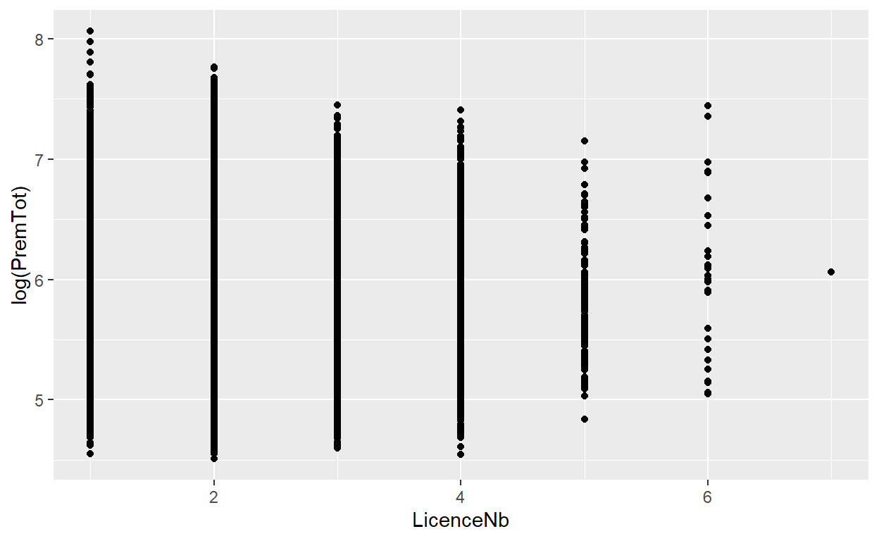 print(ggplot(df_1, aes(x = get(i), y = log(PremTot))) +