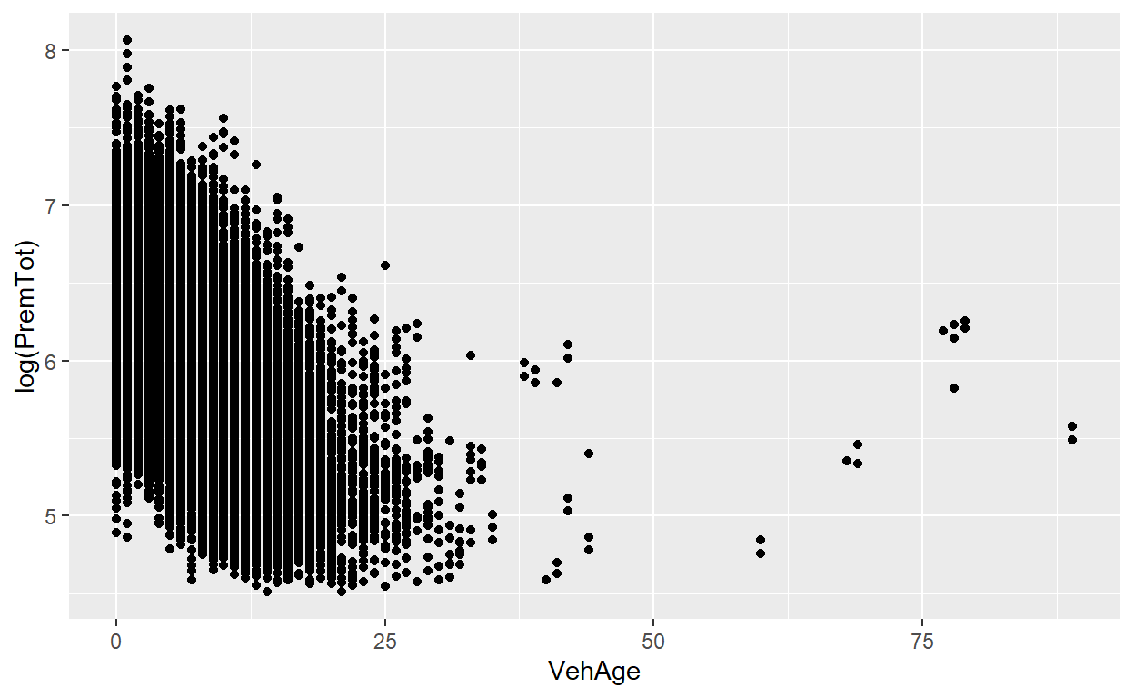 print(ggplot(df, aes(x = get(i), y = log(PremTot))) +