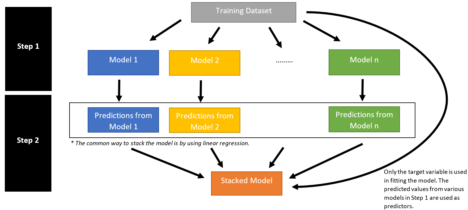 If we were to visualize the steps for model stacking, this would be how it would look like: