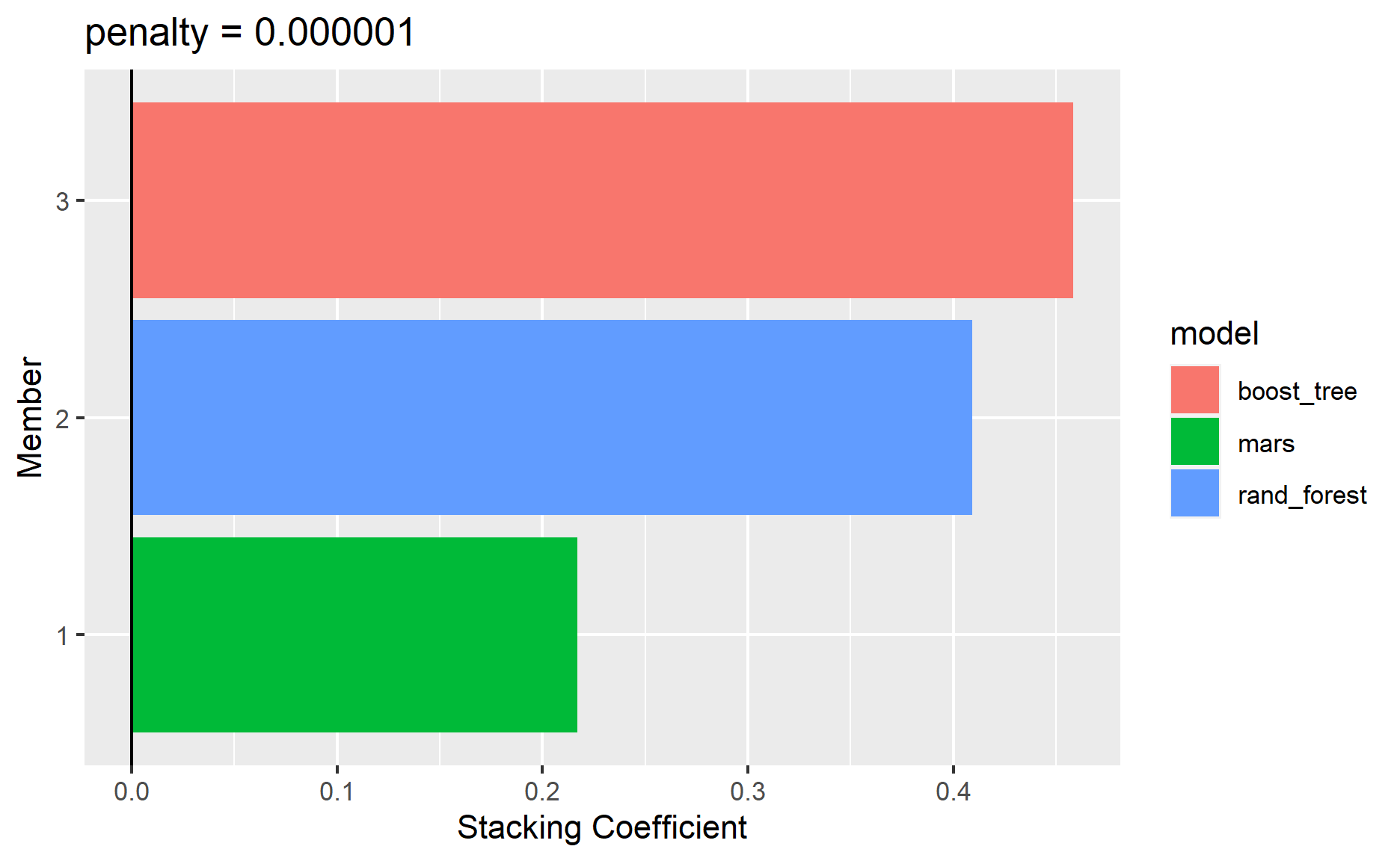 As the results shown above, random forest, xgboost and mars are used to create the stacked model.
