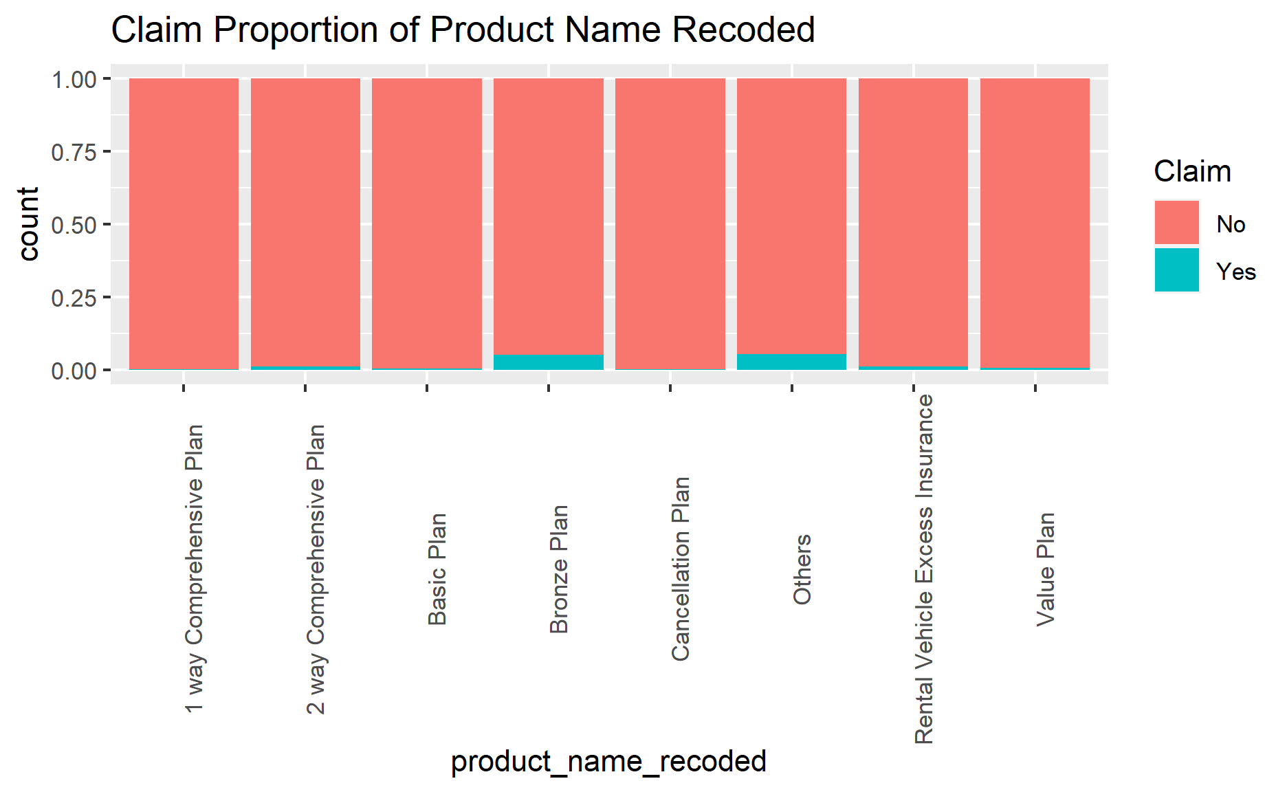 I will plot the claim proportion by product names.