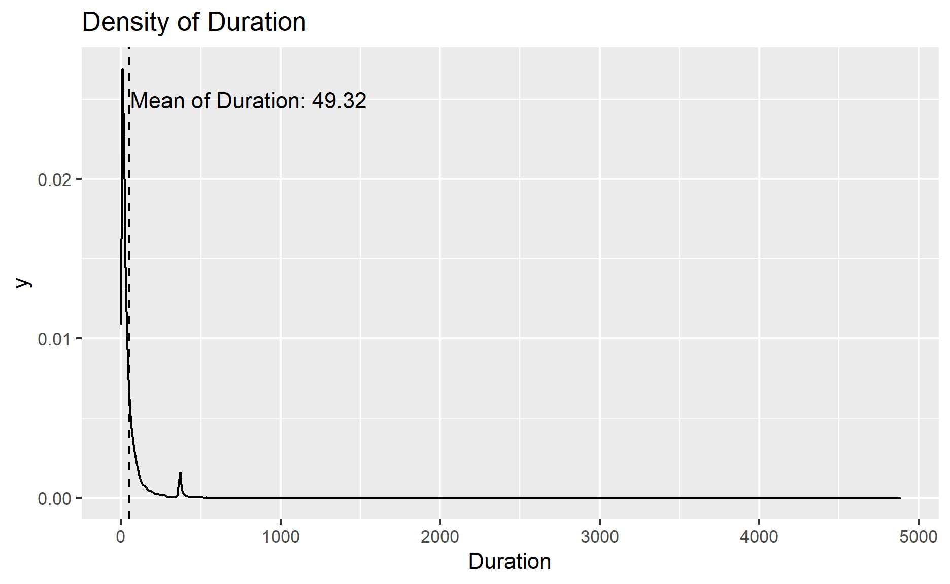 | Duration | 0 | 1 | 49.32 | 101.79 | -2 | 9 | 22.00 | 53.00 | 4881.0 | ▇▁▁▁▁ |