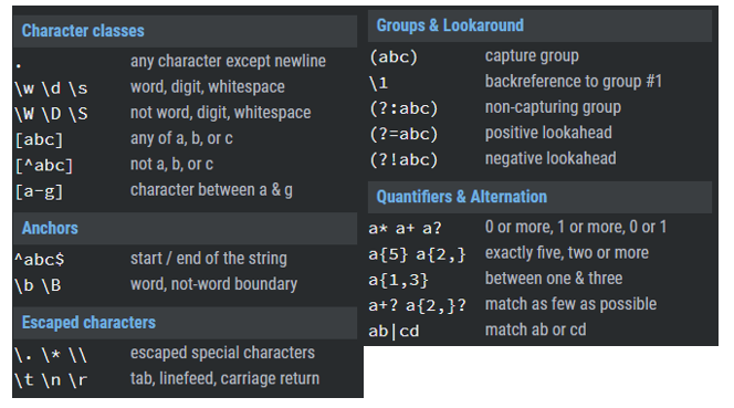 This is another great resource of the different regex syntax to extract the necessary info from the text.