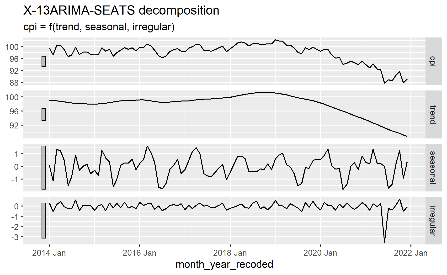 model(X_13ARIMA_SEATS(cpi ~ transform(`function` = "none") + x11(mode = "add"))) %>%