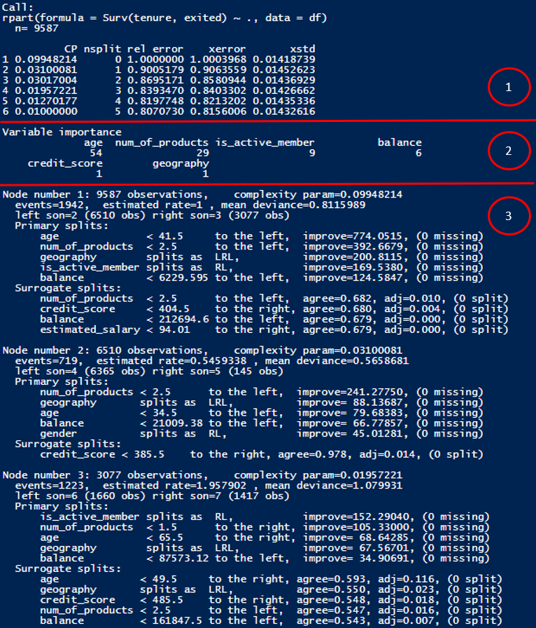 rpart(Surv(tenure, exited) ~ ., data = df)