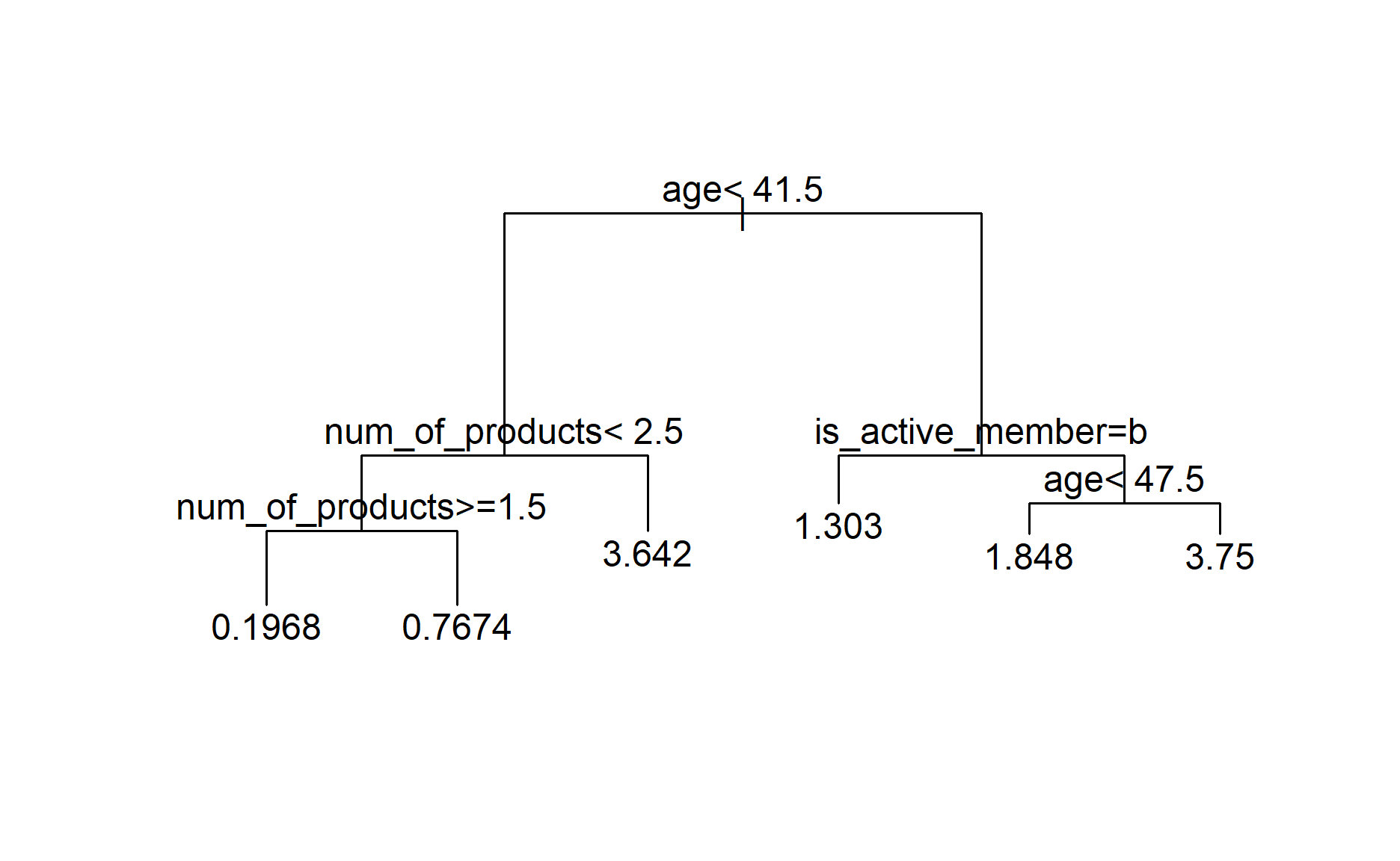 5) num_of_products>=2.5 145 147.4370 3.6416170 *