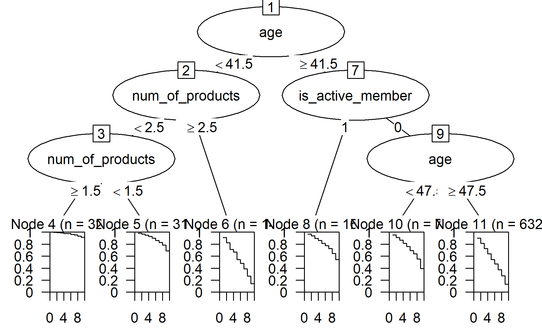 | | | | | [9] num_of_products > 1: Inf (n = 1295)