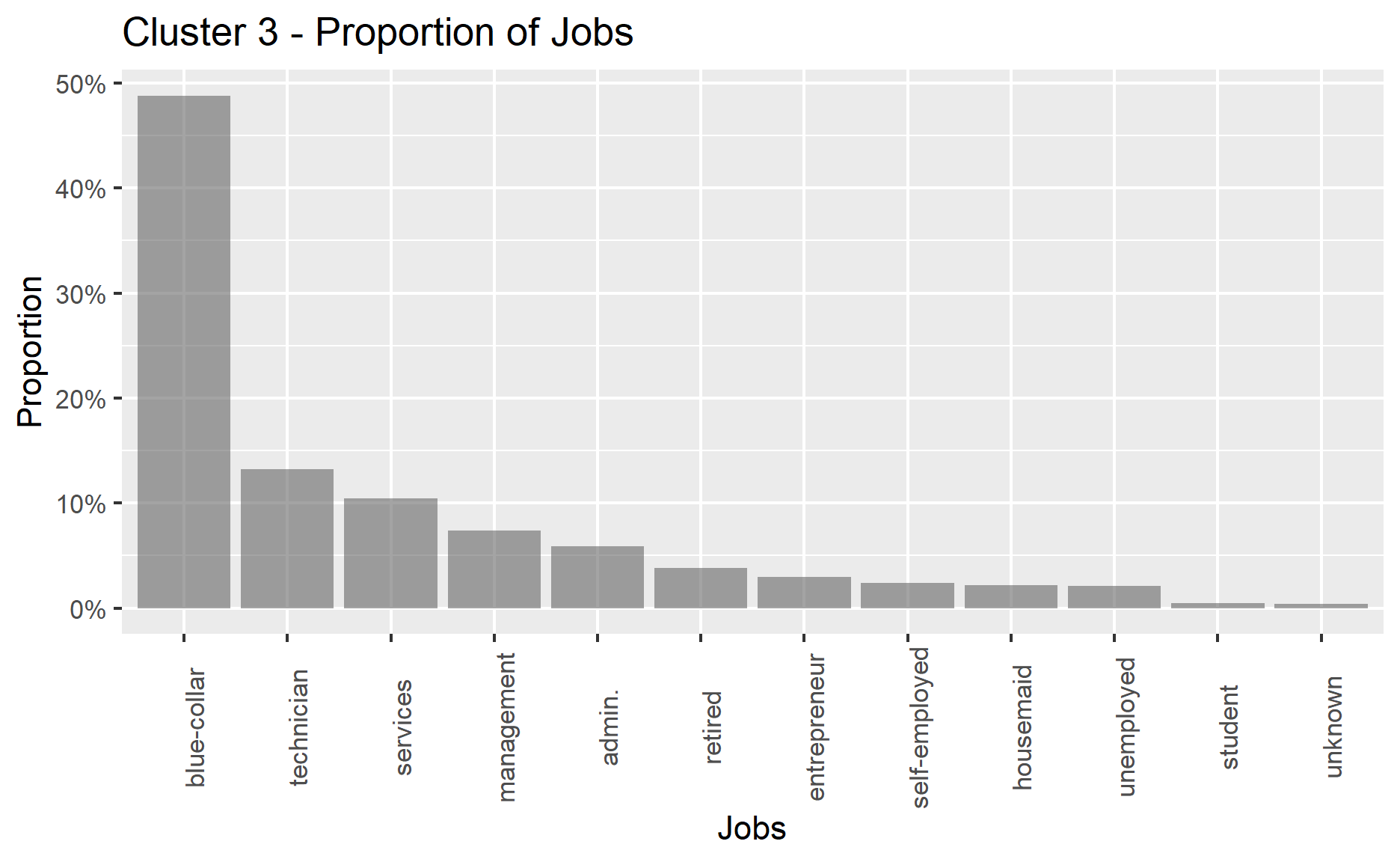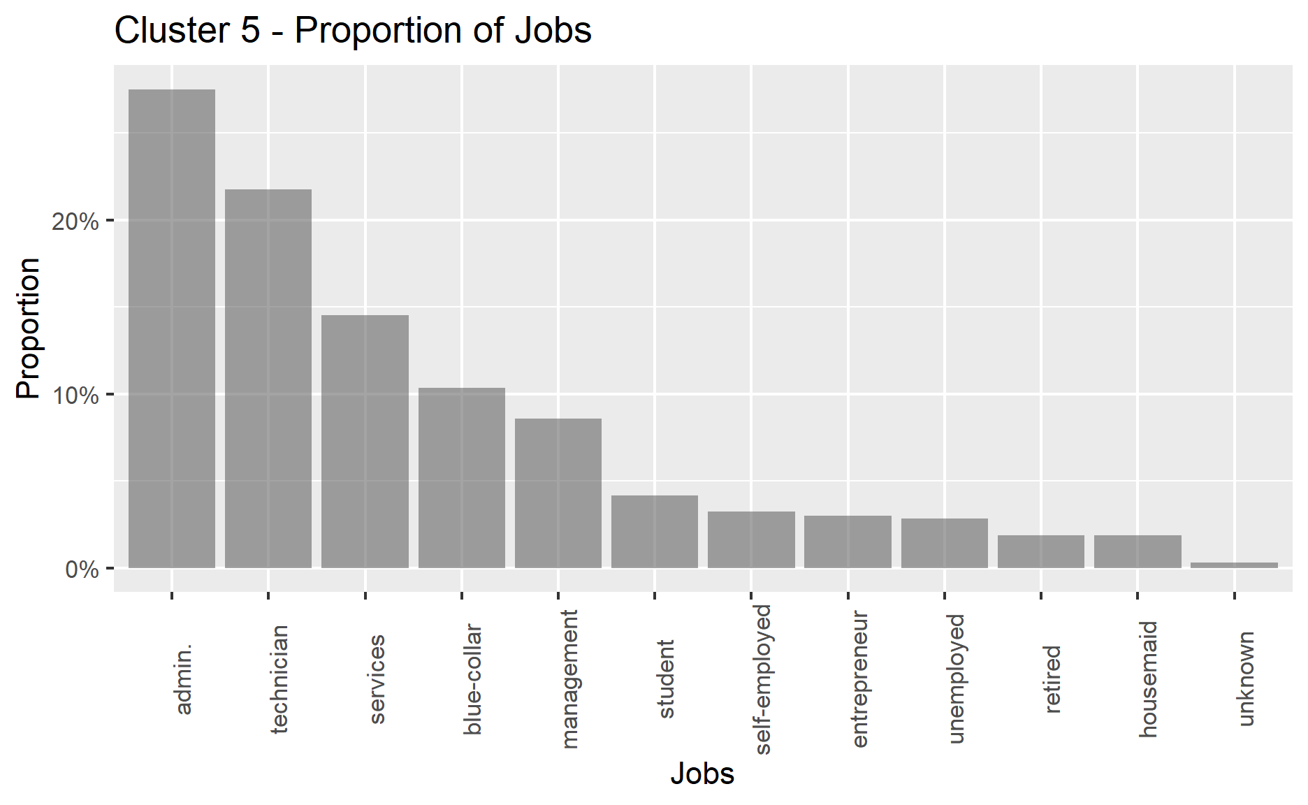 cluster self-employed services student technician unemployed unknown