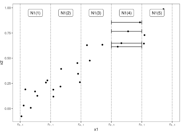 Calculate the difference in the prediction in the prediction when the feature is replaced with the upper & lower limit of the interval