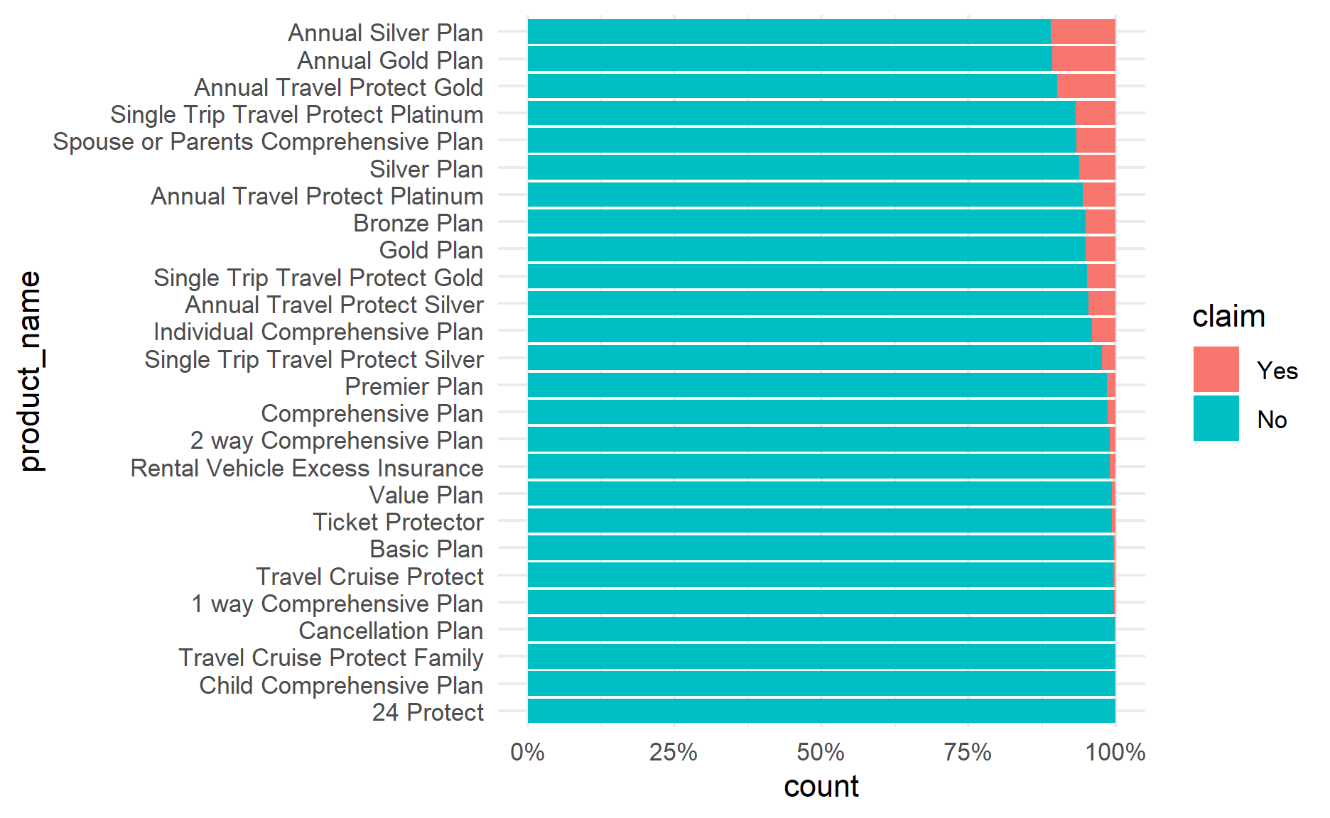 If we were to plot the proportion of claims within each product name, we could observe the negative encoded value represent a lower likelihood of claim.