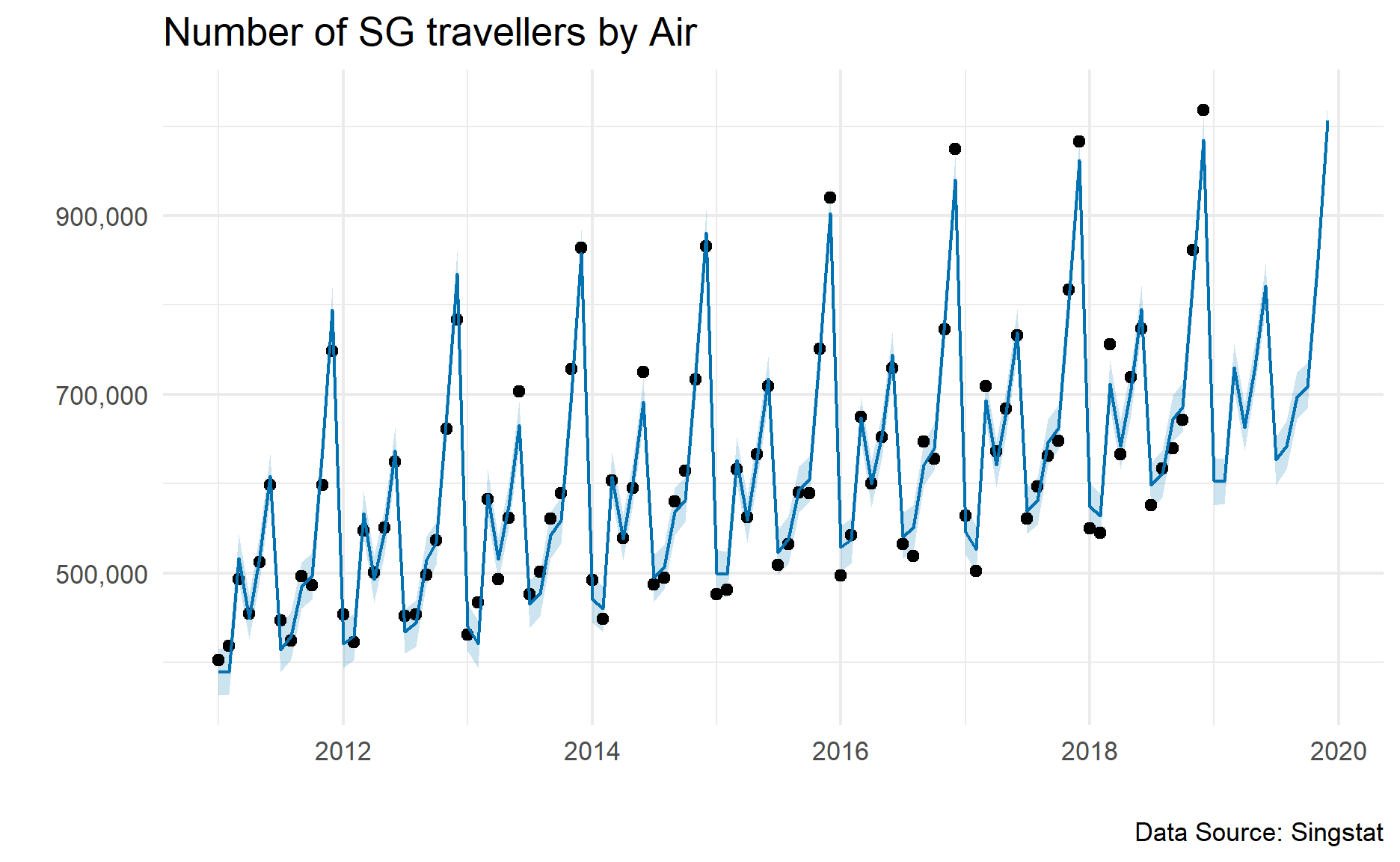 In this demonstration, I will be using the data on outbound departures of Singapore residents by air.