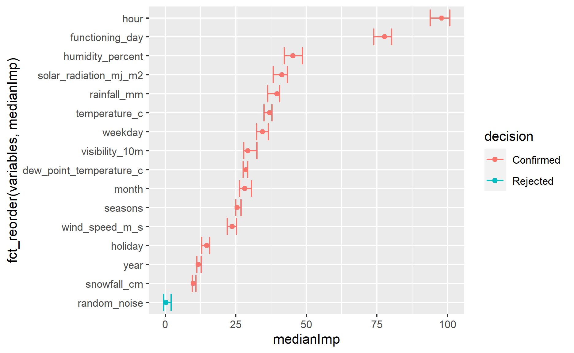 I have also included a “random noise” in the dataset to see whether the algorithm will pick up this column is unimportant.
