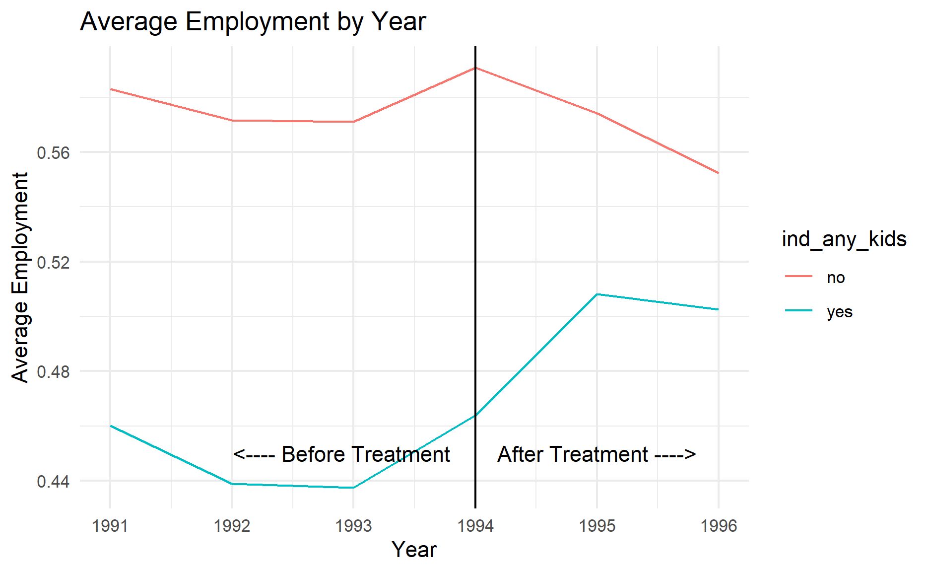 annotate("text",x = 1995,y = 0.45,label = "After Treatment ---->") +