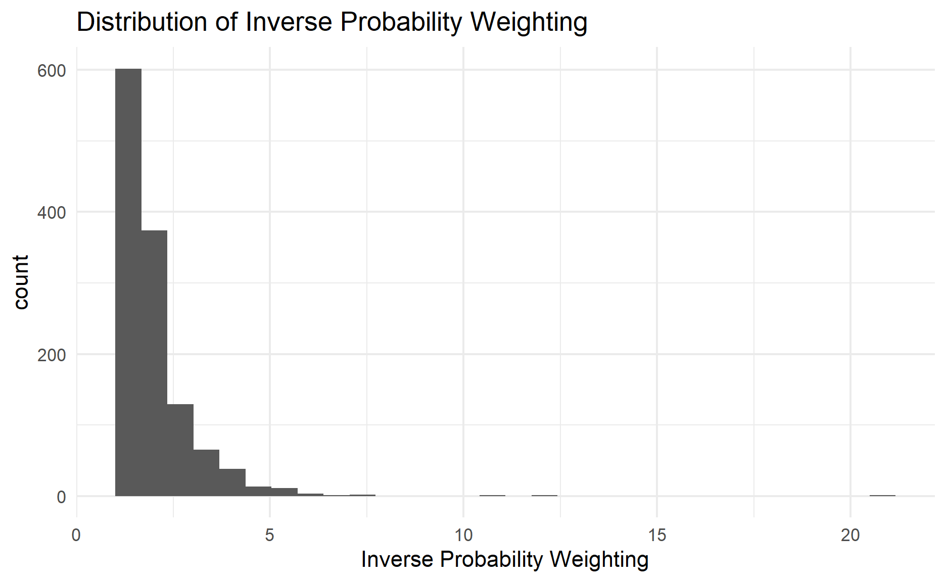 labs(title = "Distribution of Inverse Probability Weighting") +
