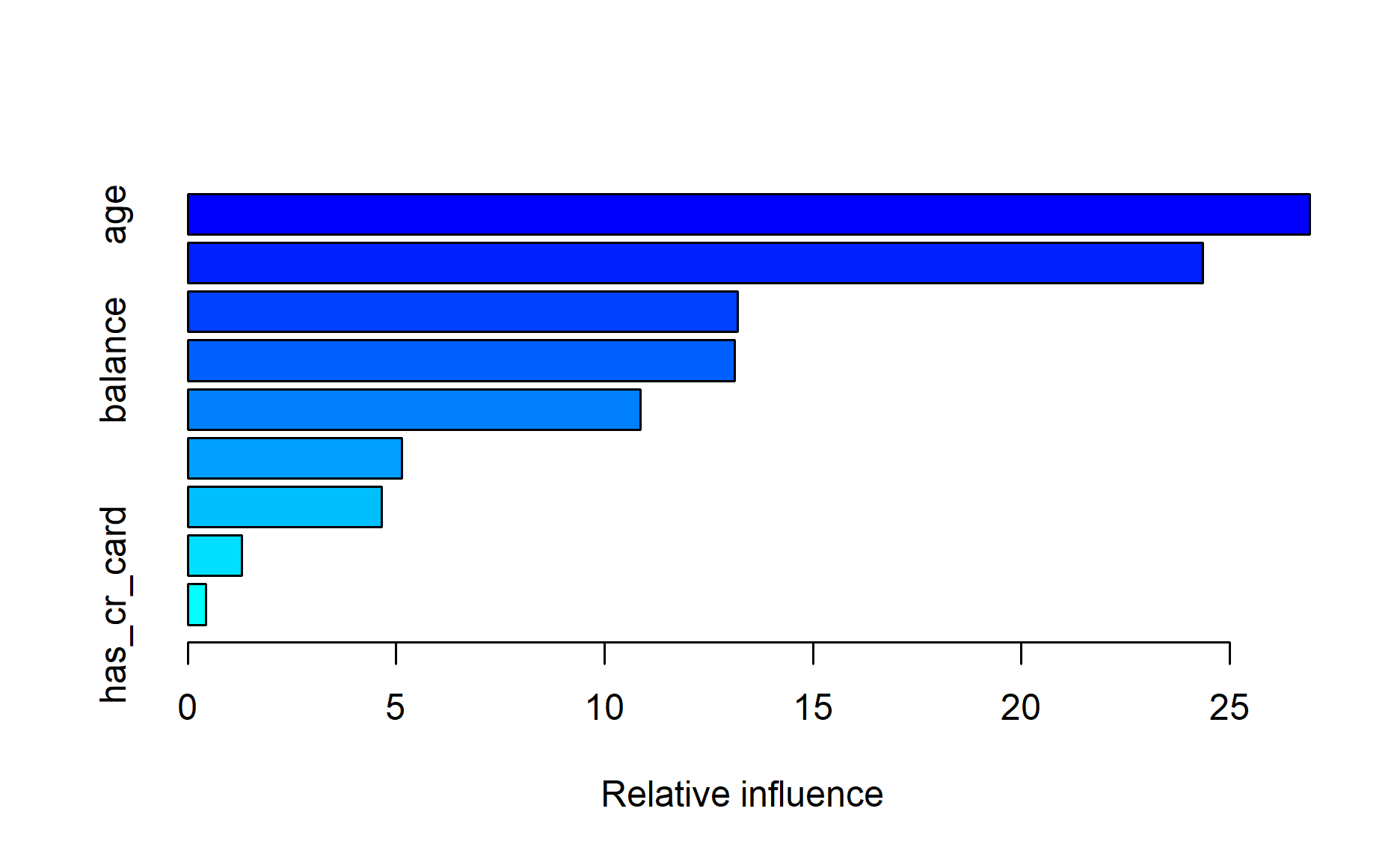 Another awesome feature of gbm package is the algorithm will estimate variable importance of all the variables.