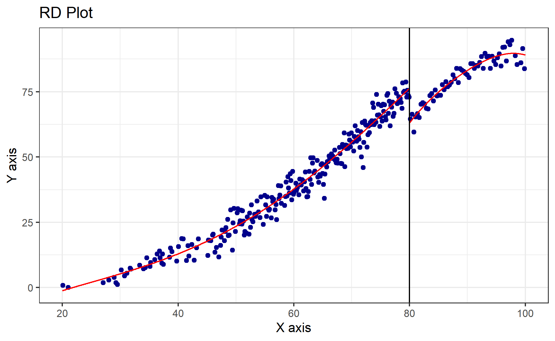 We can also plot out the results by using rdplot function.