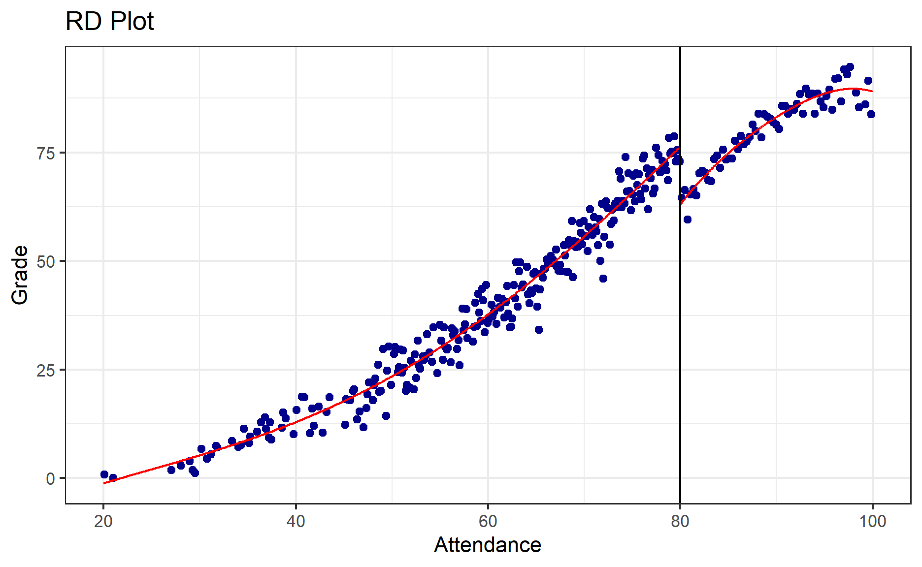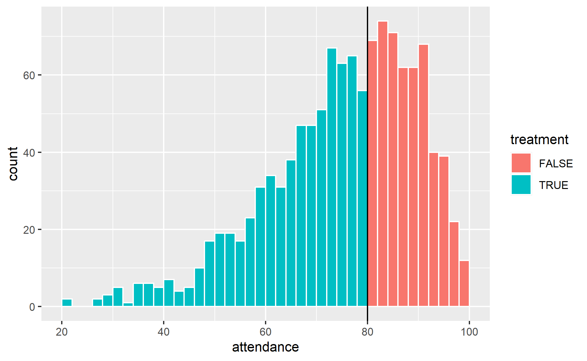 It seems like there is a discontinuity, especially around the attendance 80.