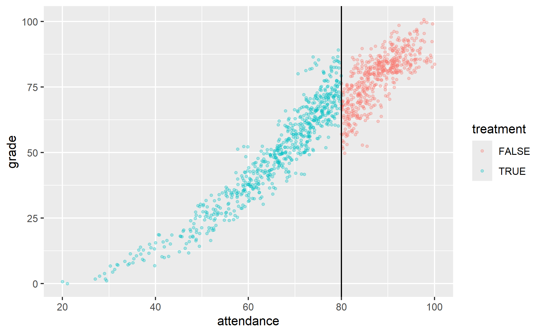 This is a fake dataset on the effect of a hypothetical program on hypothetical student grades. Students with less than 80% attendance would be required to attend a mandatory school attendance program.