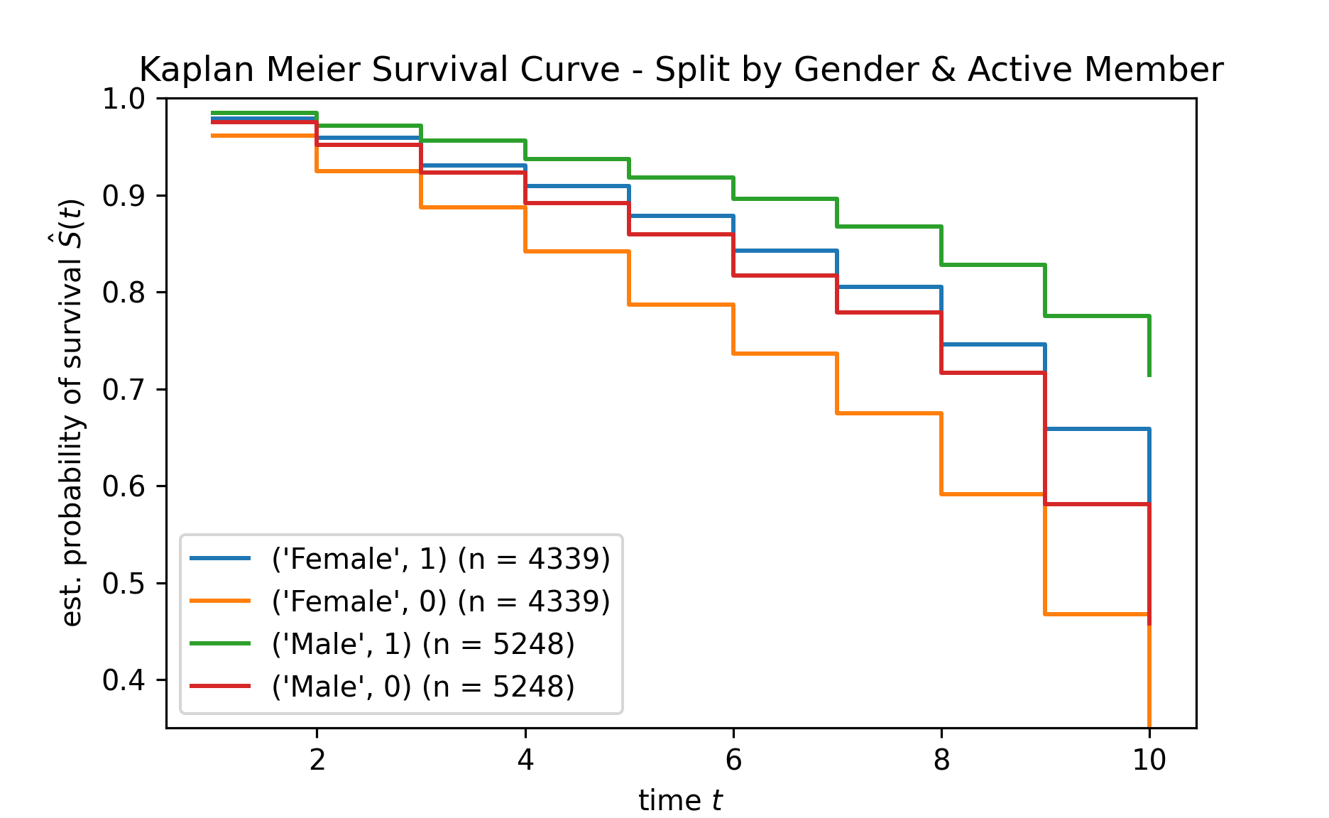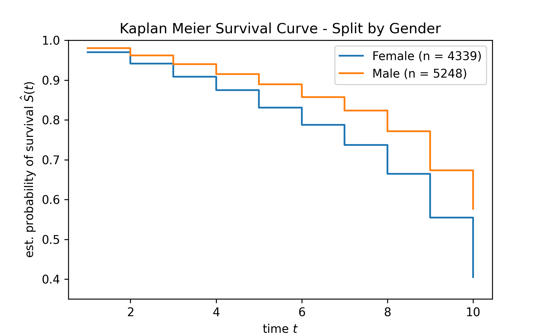 Over here, I split the survival curve by gender.