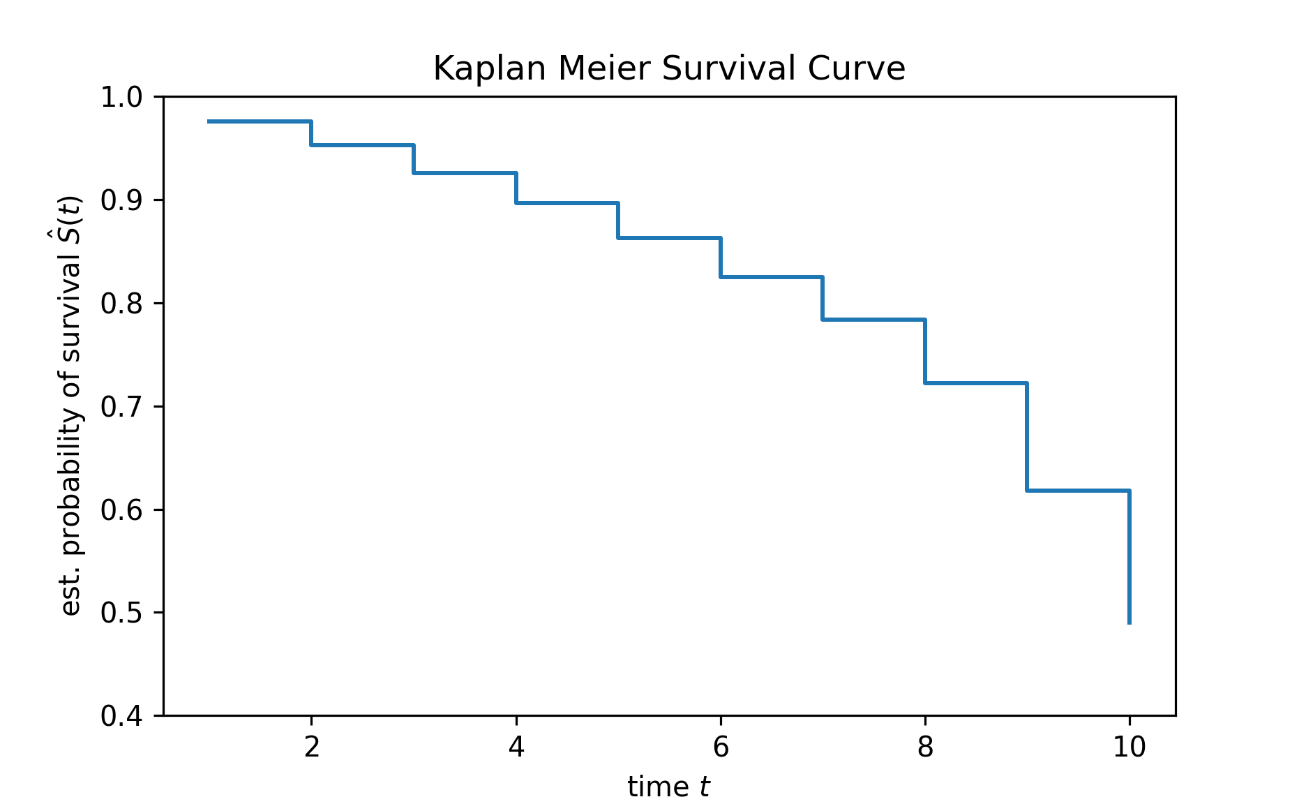 time, survival_prob = kaplan_meier_estimator(
