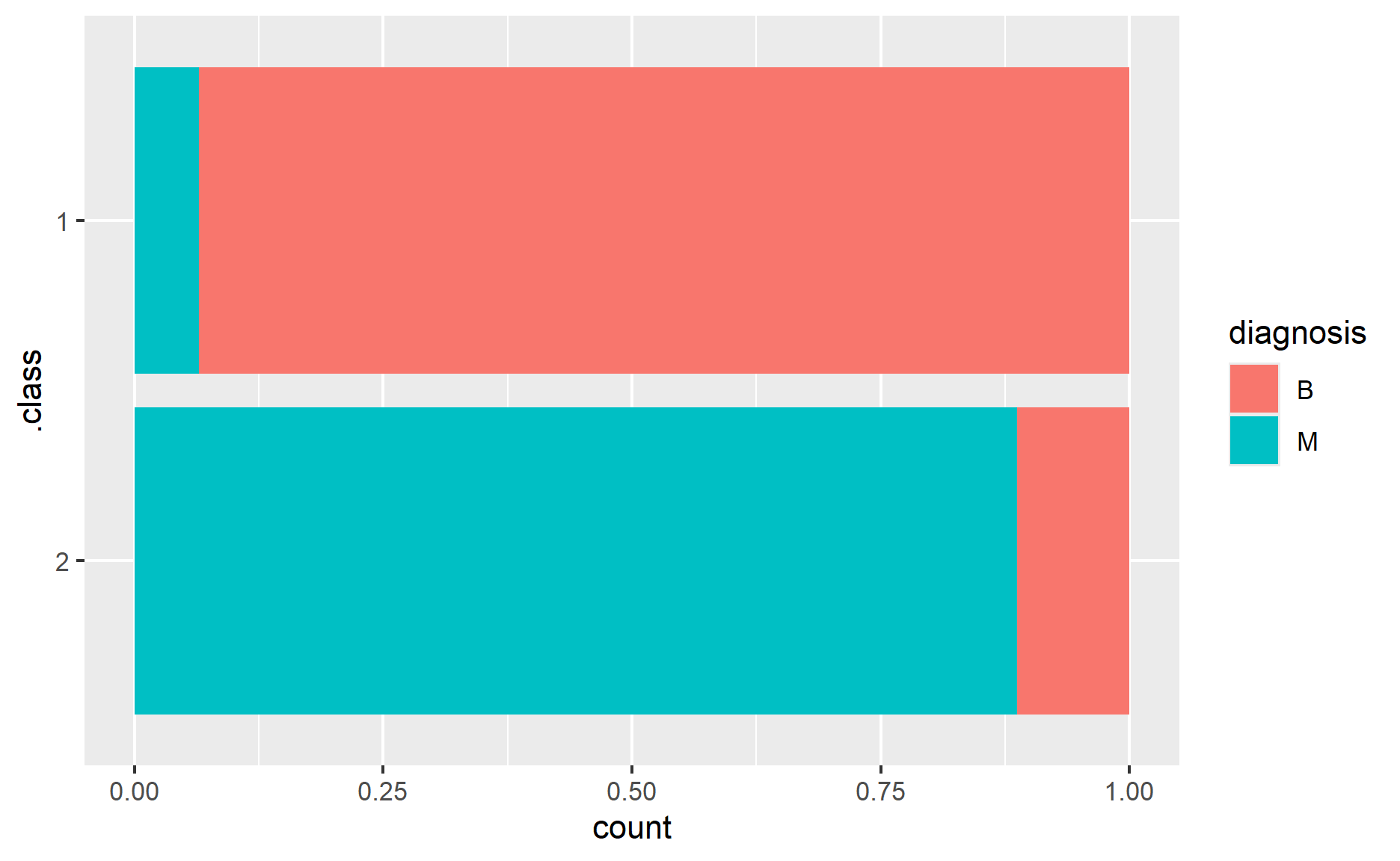 I will use ggplot to plot the graph of class versus diagnosis.