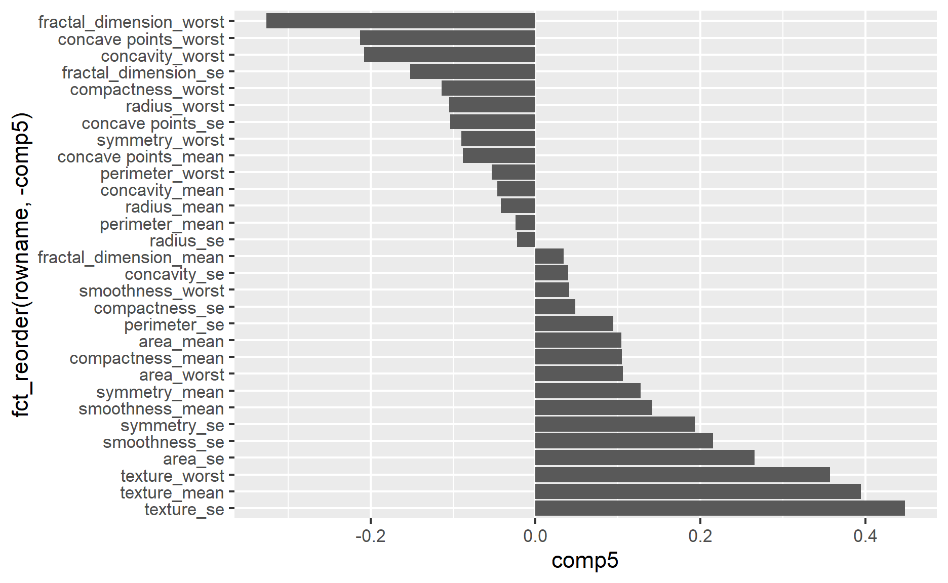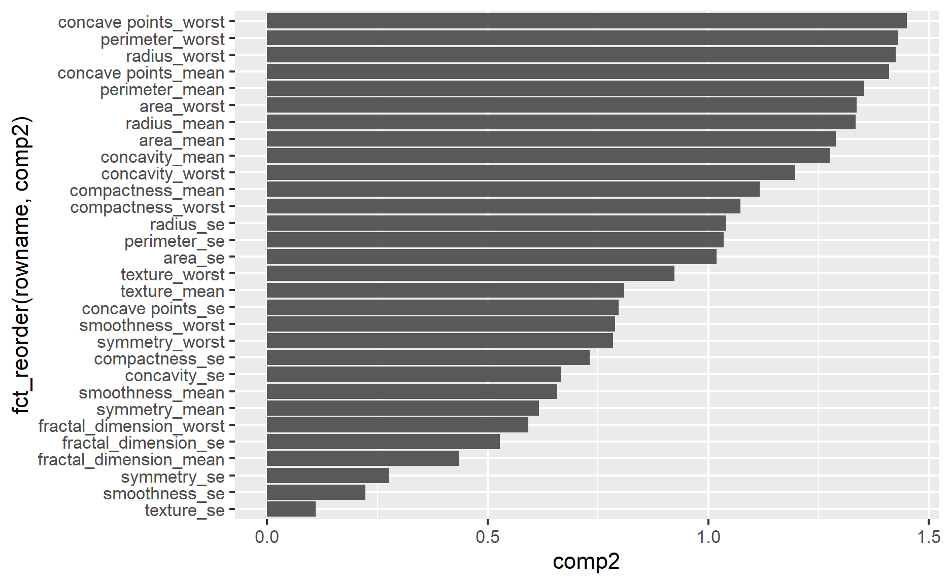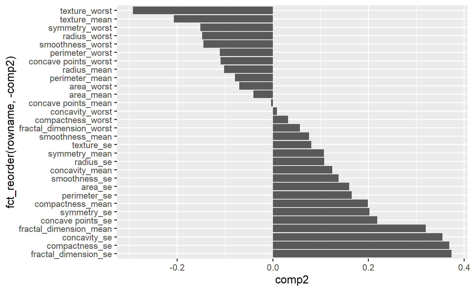 ggplot(aes(comp2, fct_reorder(rowname, comp2)
