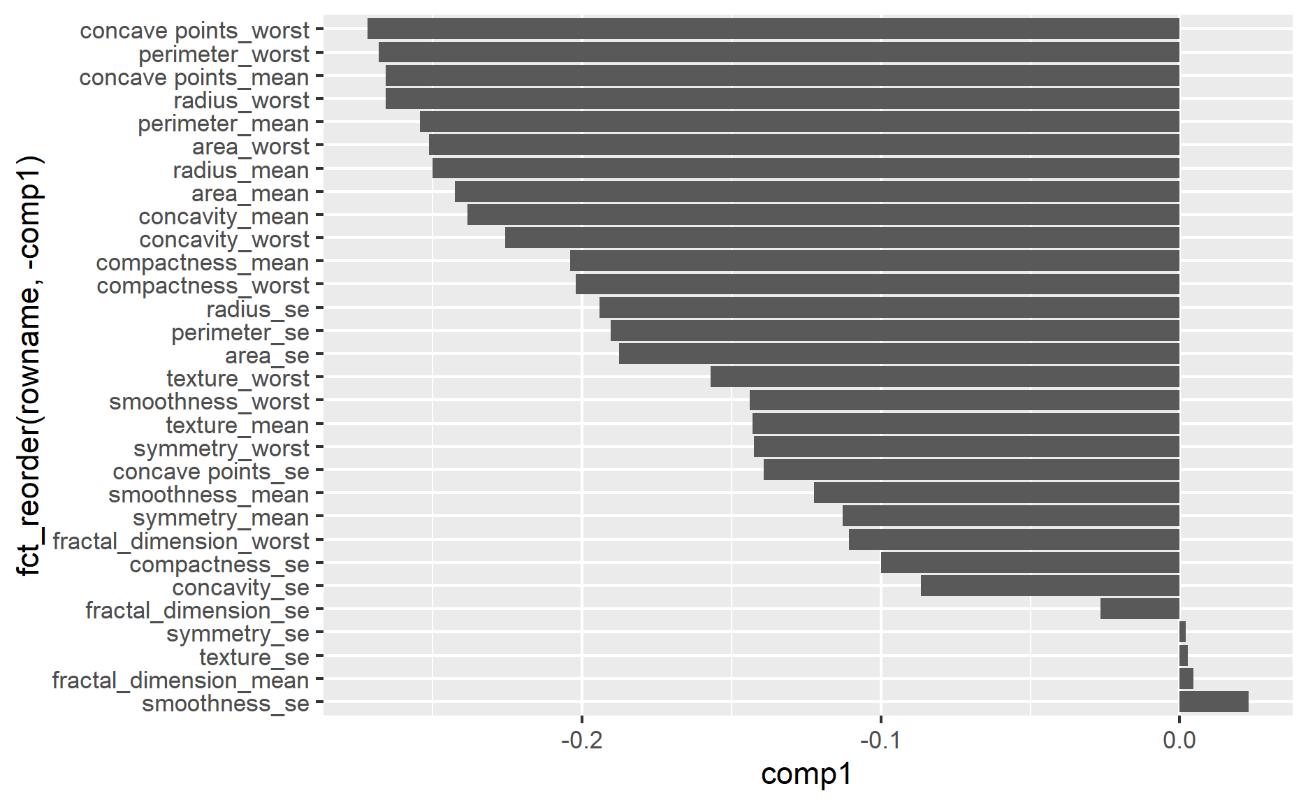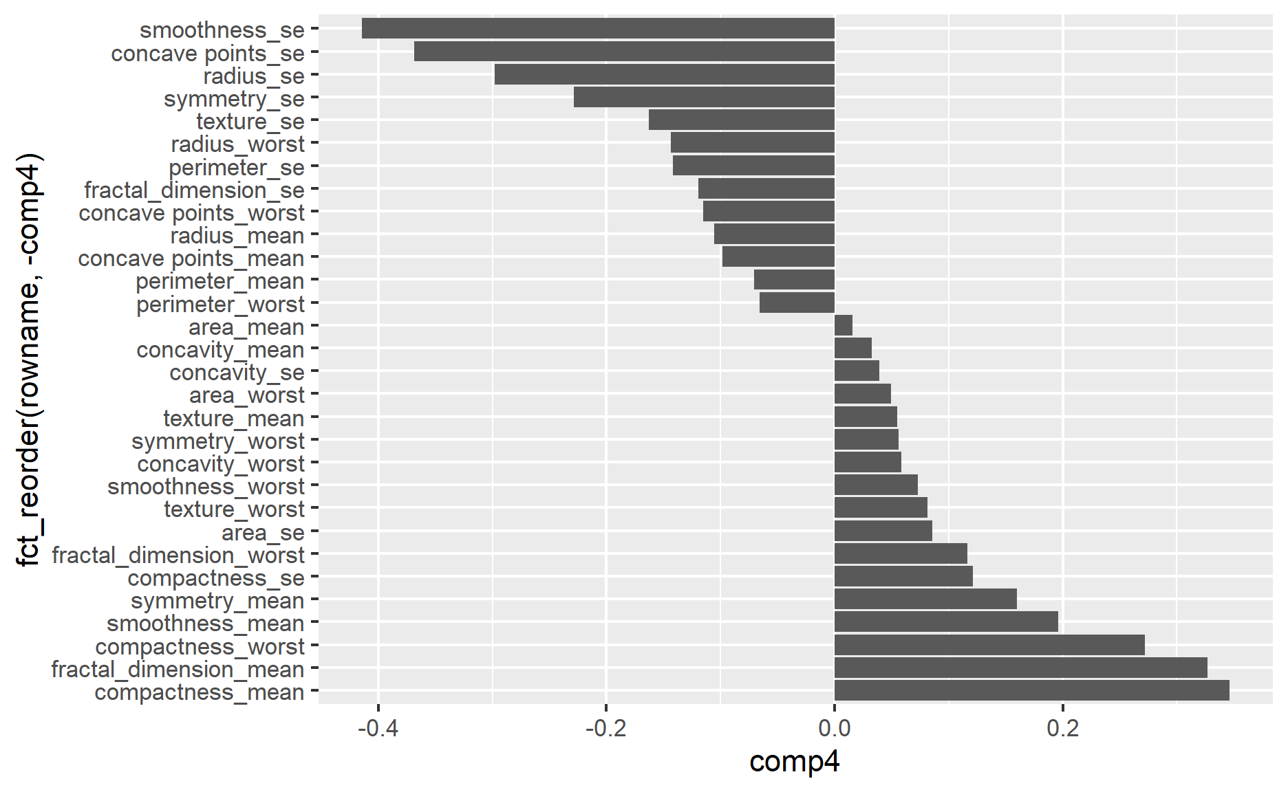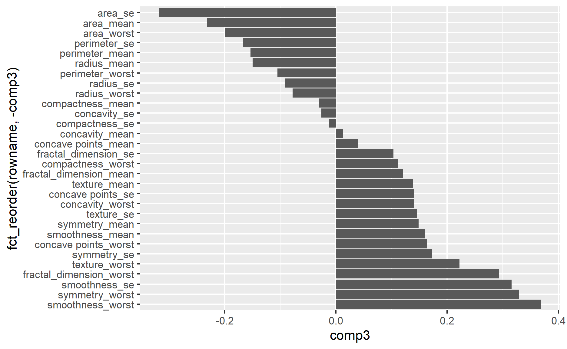 ggplot(aes(comp2, fct_reorder(rowname, comp2)