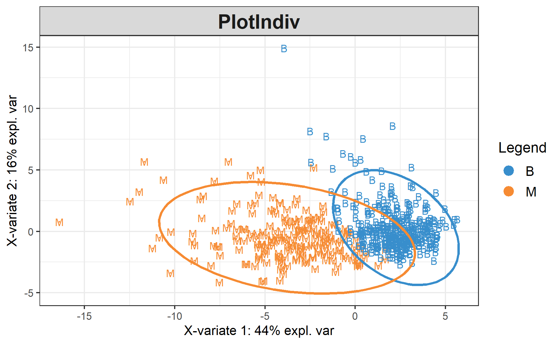 plotIndiv(pls_fit$fit$fit$fit, ind.names = df$diagnosis, legend = TRUE, ellipse =TRUE)